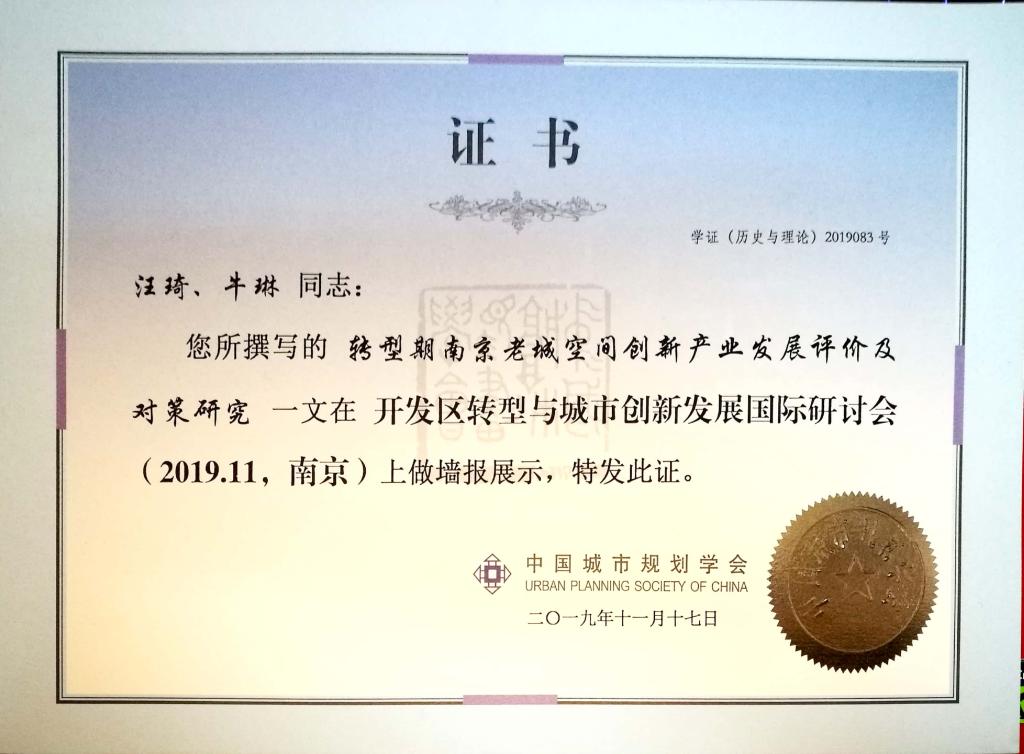 我们城乡规划专业2017届毕业生、推免至东南大学读研的牛琳同学作为志愿者参与会务工作,她的论文《转型期南京老城空间创新产业发展评价及对策研究》被会议论文集收录,并在会议期间以墙报形式进行了展示。