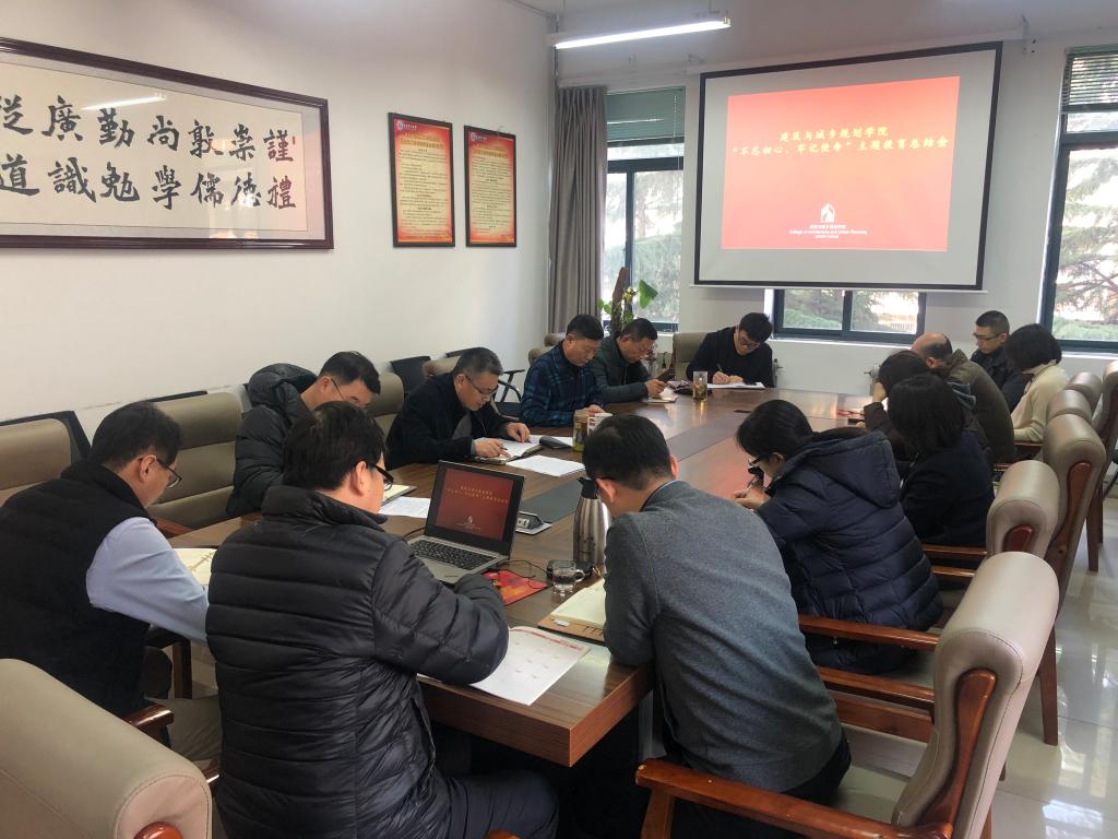 肖学斌就学院党总支主题教育开展情况进行了梳理归纳:一是要深入学习习近平总书记在“不忘初心、牢记使命”主题教育总结大会上的重要讲话,对于我们的具体工作实践具有重要指导意义;二是要推进主题教育与2020年学院冲击建筑学专业博士点、第五轮学科评估等学院重点工作有机结合,确保主题教育实效在下一步的工作中落地生根结果;三是要注重把主题教育成果转化为长效机制,充分发挥党的领导的最大组织优势、群众优势,形成“不忘初心、牢记使命”的整体优势。