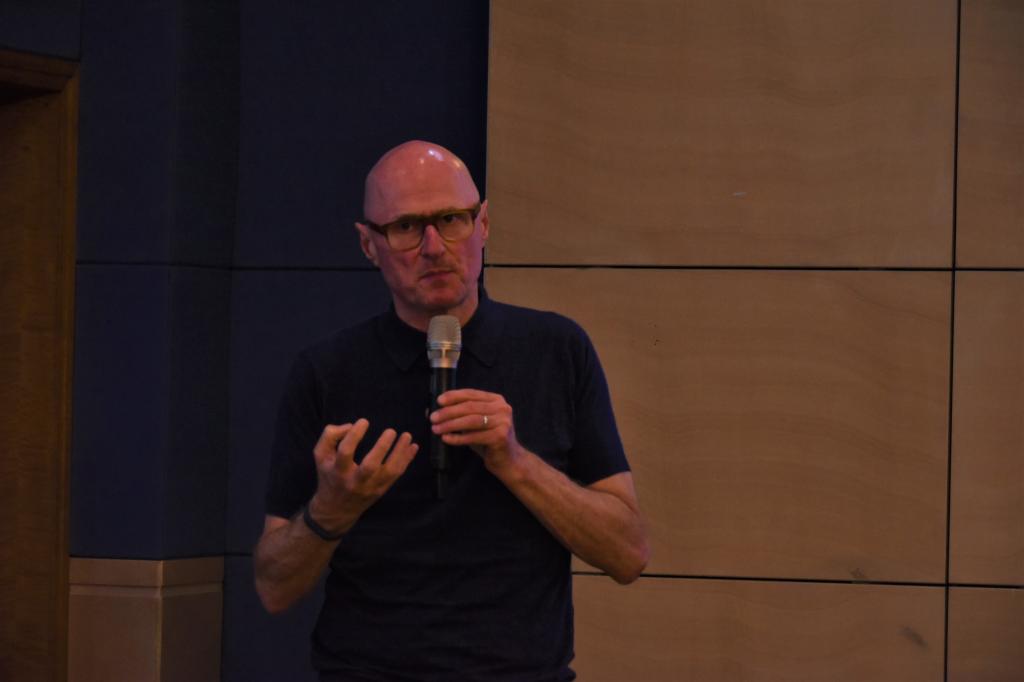 学术报告开始后,西蒙先生从本质与平凡两点介绍了讲座核心:构建理念。随后,他通过演示自己的案例,说明建筑设计是从理念出发,而理念包含人文、形态等很多内容。他通过英国皇室平面图、裸城、对巴黎城市的设计分析几个案例,阐述出建筑设计要体现当地地域元素、人文气息和历史,以此来使设计升华。西蒙以AHMM设计院设计的经典项目为案例,强调了建筑空间、自然环境与人之间的融合与交互,他认为建筑需要融入周边建筑环境与自然环境,相互之间相辅相成、互为景致;同时,他提倡增加建筑的共享空间,促进人与人之间面对面的交流沟通,以开放的建筑理念为建筑的使用者增加使用的乐趣。他还说明,建筑设计的过程中,可以通过使用周围环境形成一个和谐的整体,自然的植物往往是大自然赋予建筑的最好灵感。与此同时,在设计的过程中,要敢于发出质疑,有全局观。