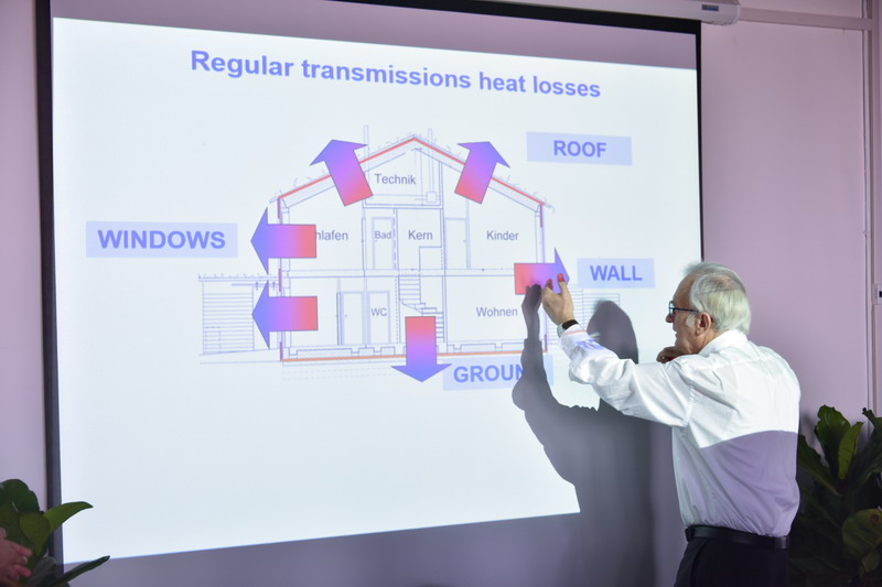 5月28日上午,在《建筑传热损失》学术讲座上,菲斯特教授利用热量计算公式,分析空气、木材、钢筋混凝土、铝等多种材料的保温性和导热性,鼓励同学们对多种材料进行尝试,体验不同导热性所带来的不同感觉。随后,他紧扣讲座主题,利用数字图表重点讲解被动房建筑的热损失与热需求关系,突出被动房可实际实施的优势。最后,在提问环节,同学们针对所讲知识提出自己的疑惑,教授细心解答,使同学们对被动房降低热损失的功能有了更直观深刻的了解,为今后的学习打下了坚实基础。