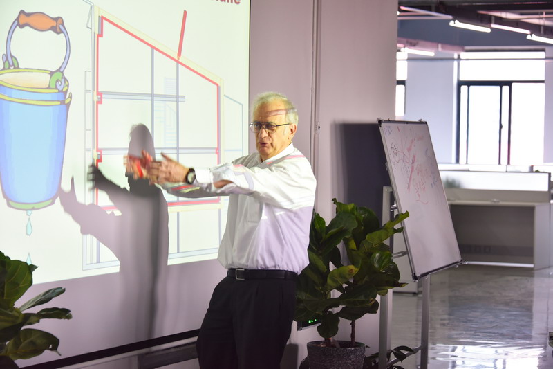 6月1日上午,菲斯特教授带来了《新风解决方案》为题的讲座,向大家介绍了“气流平衡”的新风设计理念。在讲座中,他针对被动房的新风解决方案指出,设计师首先需要合理的组织气流进入室内,并将其分层安排好。同时,借用“康达效应”阐明风在室内的流动延伸过程。此外,他还以一栋住宅为例,分析了错误的排风系统及新风管排布对室内空气压力状态的影响。这些设计理念及实际案例给同学们极大的启发。在此基础上,他阐述了“热回收”对于节约成本,降低能耗方面的重要性。讲座最后,他强调了被动房的正确开窗通风对于热回收以及节能方面的重要性,帮助同学们真正深入讲座,正确运用知识。