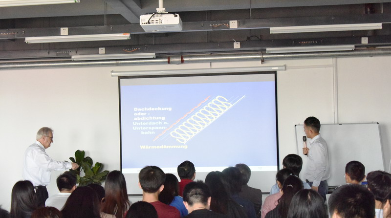 5月28日下午,菲斯特教授以《窗户能量平衡》为题,对上午有关传热方面的知识进行延伸,结合当前国际能源发展现状,进行有关房屋气密性的专题讲座。他从生活中常见的水汽循环出发,引申到建筑内部气密性低会对建筑的使用性能,使用年限产生巨大影响。菲斯特教授着重强调建筑作为满足人类居住需求的空间,需要良好的气密性以满足人类生活对温度,湿度方面的条件。同时,应考虑建筑设计是否符合高能效,低能耗的环保节能理念,符合社会可持续发展需要。随后,菲斯特教授展示了已建成被动房中所应用的提高气密性的技术,并比较各类参数值及实际测量值来证实气密性提高对社会发展的有利作用。为同学们今后的研究指引了方向。