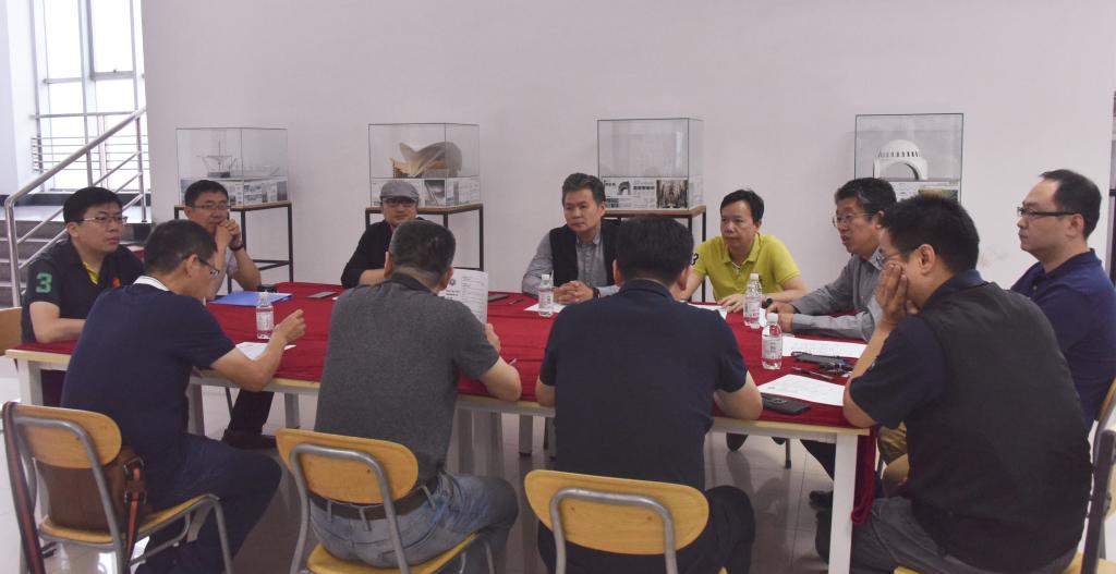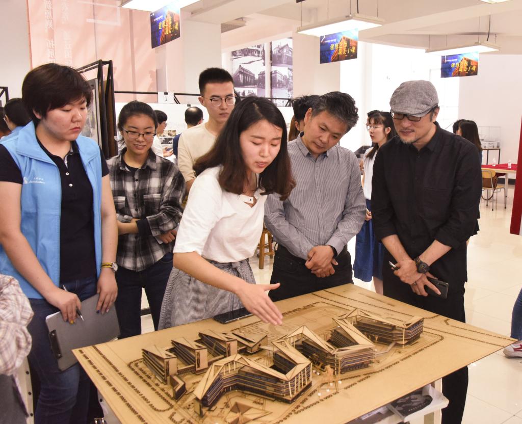 在二楼的建筑学专场,展评邀请了青岛北洋建筑设计有限公司总经理郝彤、青岛腾远设计事务所有限公司总建筑师王震铭、北京中环世纪工程设计有限公司青岛分公司总经理赵军、青岛国立设计有限公司副院长徐瑾东、青岛理想城市建筑设计有限公司总建筑师绳兵、DC·HD国际设计有限公司青岛中房建筑设计院有限公司院长刘刚担任评委,402cc永利官网党总支书记肖学斌、副院长朱一荣、党总支副书记高江、建筑系主任王少飞等出席展评。