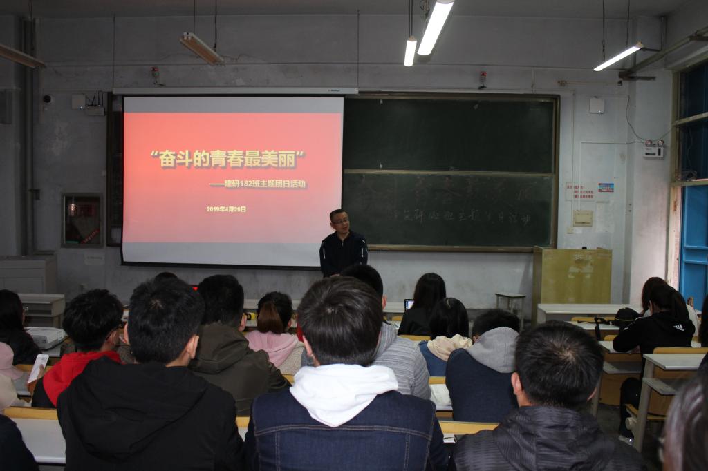 为纪念五四运动100周年,弘扬五四精神,2019年4月26日下午,402cc永利官网建筑研182班团支部在一教102教室开展“奋斗的青春最美丽”主题团日活动,学院党总支书记、建筑研182班班主任肖学斌参与并主持了活动。