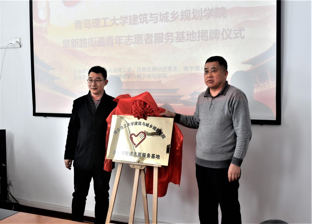 为共建良好的社区文化环境,提高学生社会实践能力,增强学生社会责任感和道德责任感,搭建学校、社区合作育人平台,4月10日下午在阜新路街道办事处举行阜新路街道青年志愿者服务基地揭牌仪式暨“筑美于行·知行并进”志愿服务节启动仪式。阜新路街道党工委副书记徐以兴,抚顺支路社区书记刘振英,402cc永利官网党总支副书记高江,学生工作办公室主任、分团委书记王鹏飞,18级辅导员王明慧及部分志愿者代表出席了本次仪式。
