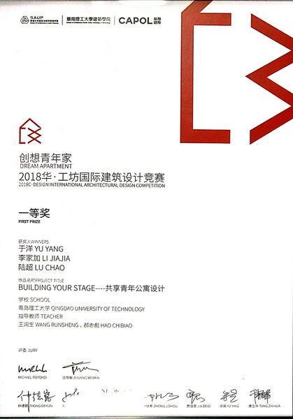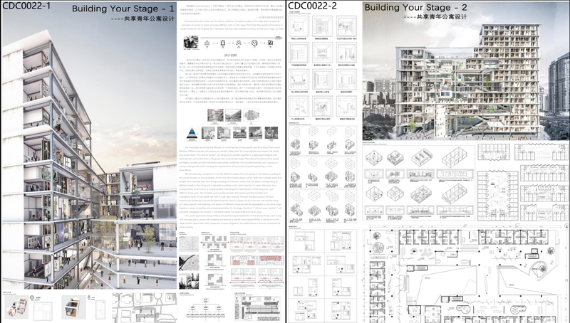 获奖作品《Build Your Stage》通过调查当代青年人的生活方式以及对未来生活方式的畅想,从青年人的心理及精神层面出发,将不同的生活需求结合实际情况,合理的对应到建筑的不同空间之中,体现每个居住者扮演的独特角色,担任的特定的社会责任,与其他角色一起站在自己选择的人生舞台之上,相互融合,呈现出更加精彩的人类社会演出。大赛评委会主席庄惟敏表示,此作品解决了高密度区域内年轻人的居住问题,具有很强的建造性,并期待作品落地的成果。Michael Rotondi教授对于一个方案中简化的处理方法和优雅的设计这两方面共存,表示了高度赞扬与欣赏。