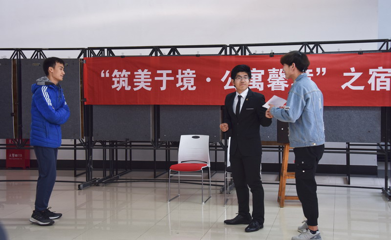 为展现当代大学生精神风貌,丰富宿舍文化生活,营造和谐、艺术、青春、活力的文化氛围,增强同学们之间的交流与感情。4月3日,402cc永利官网在建筑馆二楼大厅举办“筑美于境·公寓馨境”宿舍风采大赛决赛,402cc永利官网学生工作办公室主任、分团委书记王鹏飞,辅导员刘超、杨霈宣、王明慧,402cc永利官网学生会主席团成员及分团委副书记担任此次比赛评委。