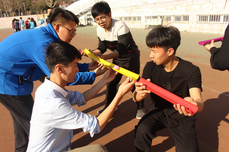 活动开始,王明慧老师致辞,说明了此次活动的重要意义,对积极参加此次活动的同学表示了鼓励和肯定,希望同学们的青春充满喜悦和色彩,绽放青春正能量。此次活动将同学们随机分配成四组,以团队作战的模式进行。大家秉着“友谊第一,比赛第二”的态度愉快的进行了本次比赛,大家热情高涨,场面十分热闹。此次趣味运动会共有六个项目分别是同心鼓、摸石过河、能量传输、两人三足夹红豆、不倒的棍子和穿绳子。每一个小游戏中,四个小分队纷纷使出全身解数,动用身上每一个细胞,绞尽脑汁地去更好地完成游戏。大家为了游戏的胜利都努力着。比赛中同学们一直保持着高涨的热情,落后的队伍没有气馁,依然坚持到最后,展现了402cc永利官网同学们永不放弃、不畏艰难的精神。大家在一片欢声笑语中结束了本次趣味运动会。此次比赛二队拔得了头筹,四队为第二名,一队、三队分别是第三名、第四名。