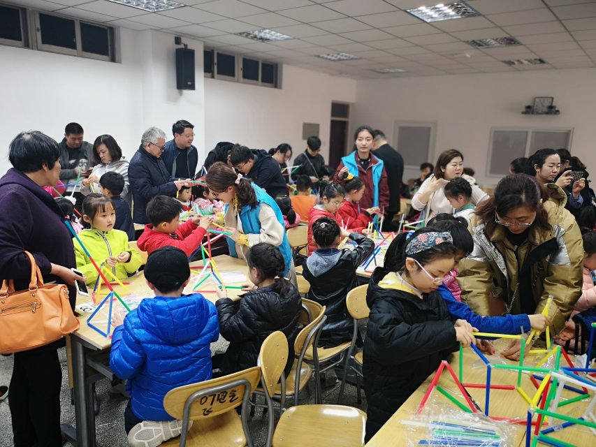 按照既定行程安排,同学们在家长陪同下陆陆续续到达了建筑馆东门门口集合。在建筑馆参观的过程中,志愿者们有序地引导孩子们参观了一楼、二楼各种建筑模型,并为他们进行了生动详细的讲解,让孩子们在讲解中对建筑模型有了更深的了解。随后,在志愿者的带领下,孩子们分别参观了数字建构实验室、建筑物理实验室及建筑营造实验室,志愿者为孩子们介绍了实验室的用途和各种仪器的使用方法,并结合视频资料进行了生动的演示,过程中,孩子们都聚精会神认真学习,充满了探索精神。最后,孩子们来到建筑馆314教室开始了“吸管塔”、“建筑模型搭建”的游戏环节。“吸管塔”环节中,孩子们在家长和志愿者的陪伴下充分发挥自己的想象力,仔细思考,利用简单的材料创造属于自己的空间,“建筑模型搭建”环节则是家长与孩子们一起参与制作,整个教室充满了孩子们的欢声笑语,其乐融融。随行家长对孩子们的表现都非常满意,并对本次研学活动的流程安排和志愿者的认真工作给予了高度赞扬。