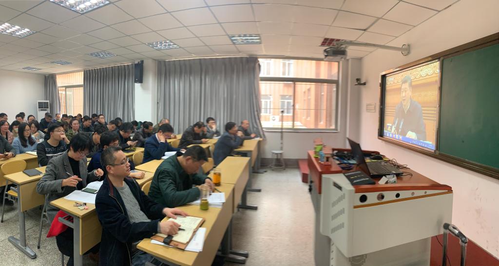 3月27日下午,402cc永利官网召开全体教职工大会,学习传达习近平总书记在学校思想政治理论课教师座谈会发表的重要讲话精神。