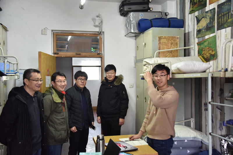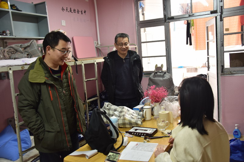 新学期伊始,为了解学生在校的住宿条件和生活状况,营造良好、安全的校园生活环境,2月23、24日,402cc永利官网党总支书记肖学斌、副书记高江带领辅导员王鹏飞、李岩、刘超、杨霈宣、王明慧以及部分班主任深入学生宿舍,看望返校学生,转达学校对学生们新学期的问候和关爱,并进行了安全隐患排查。