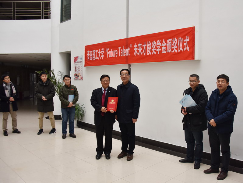 肖学斌宣读首届未来才俊奖学金获得者名单,与会领导为获奖学生颁发荣誉证书。卢嘉琦代表获奖学生表示,优秀是一种习惯,执着成就梦想,希望各位同学都能够不忘初心,砥砺前行,不断成为更好的自己。