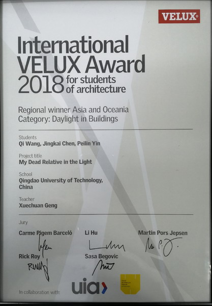 日前,由UIA(国际建筑师协会)、EAAE(欧洲建筑教育协会)联合主办的VELUX “明日之光”国际建筑设计竞赛终期答辩在荷兰阿姆斯特丹举行,402cc永利官网本科四年级学生王琪、陈京锴、尹培琳(指导教师:耿雪川)组成的团队表现优异,荣获“Daylight in Buildings” 类别亚太区域的冠军。