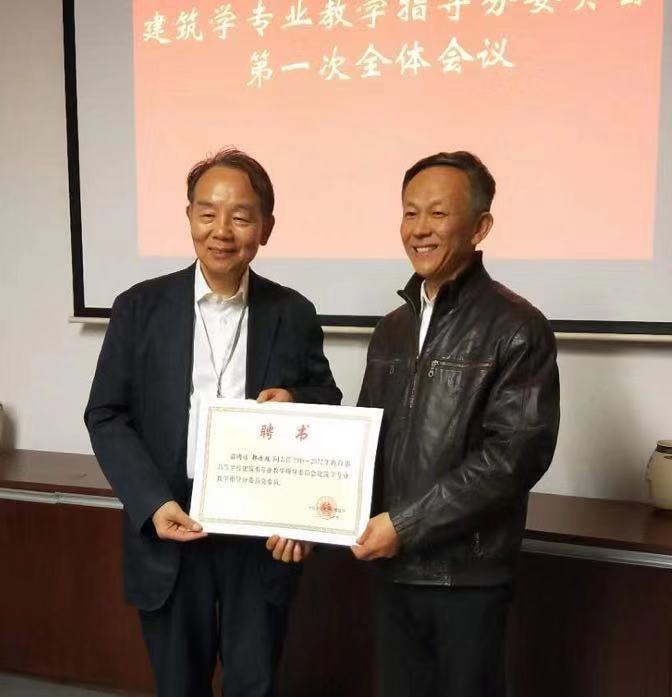 大会进行中还进行了建筑学专业指导分委员会第一次全体会议,我们郝赤彪教授当选为建筑学专业教学指导分委员会委员,并由王建国院士颁发了聘书。