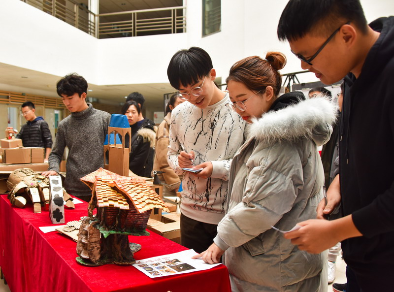 为加强学院学子的创新精神,培养同学们的团队意识,践行低碳环保的生活方式,日前,第九届创新设计节之“纸箱旅行大赛”于11月28日下午在建筑馆三楼大厅进行公开展评。建筑学专业侯可明博士和18级辅导员王明慧以及学院学生会主席团成员进行了现场投票。