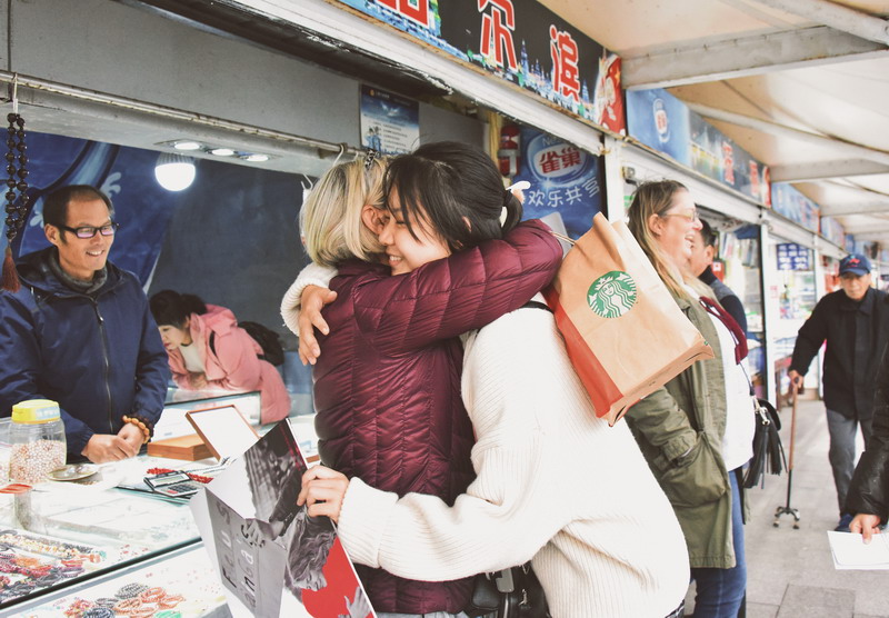 在拥抱志愿者活动招募期间,同学们踊跃报名参加。简单培训过后,在以“杜绝纠缠打扰无礼嬉闹;保持绅士温柔真诚用心”为行动原则下,志愿者于下午两点三十分在五四广场集合,以小组为单位开始进行拥抱陌生人的活动。活动中,同学们抛却羞涩,主动向陌生人征询是否可以拥抱,在得到对方同意后进行热情拥抱并送上温暖的微笑,通过这种方式传递关怀。活动过程中志愿者还主动与语言不通的外国友人交流,展现出志愿者的热情与活泼,随后向陌生人进行采访,以填写问卷的形式对本次活动进行了基本的调研总结。本次拥抱志愿者们也表示“拥抱”不是目的,而是希望以这种温暖的形式传达“拒绝冷漠”的精神,通过拥抱促进大家对人情冷暖的关注,同时提醒人们拒绝冷漠,热爱生活。真正做到温暖他人,温暖社会,温暖自己。