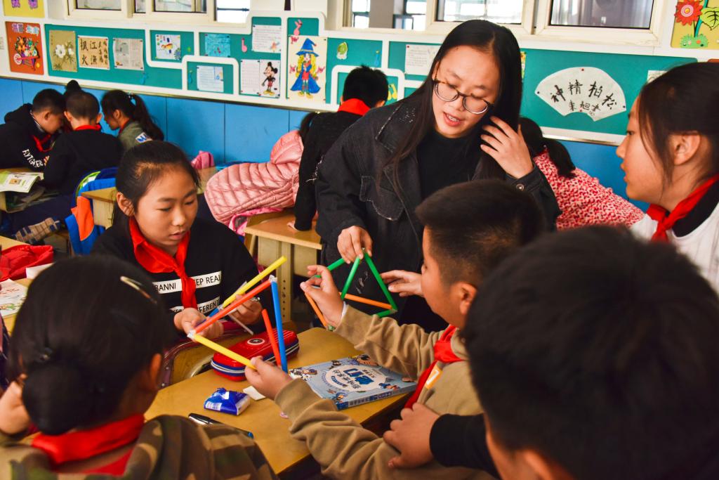 此次支教课程为理论课,由志愿者王梦雨首先为小同学们做出讲解,她由“房屋”的设计引向“建筑”的设计,而后提出“吸管塔”的感念,帮助小同学们简单直观地认识了授课主题“吸管塔”。在上课的过程中,同学们对所讲内容表现出极大的兴趣与好奇心,争着回答问题并展现出了丰富的想象力,课堂气氛非常活跃,同时,志愿者们也不禁被孩子们单纯、可爱、充满好奇心的品质而触动,尽全力对大家提出的问题知无不答。课程讲解结束后,志愿者们还向小同学们发放了吸管塔的模型,小朋友们以分组的形式,积极和志愿者讨论自己的想法,授课气氛十分良好。
