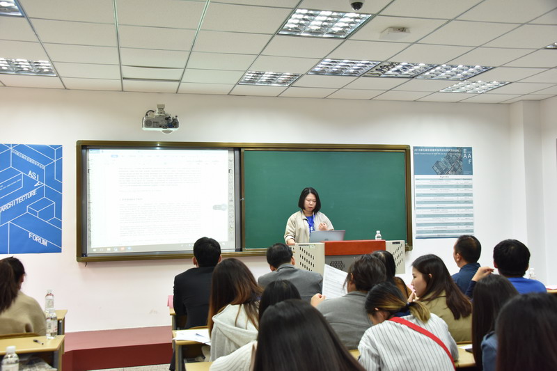 Ha Ni Moon介绍了有关制定促进心理健康的地方社区指标,重点关注了其中影响地方社区心理健康的主要变量,尤其是当地社区和环境因素,为地方社区设计提供了值得借鉴的参考内容; Lin Shoudie以青岛市老城区为例,结合青岛市现代城市规划,分析了BNB行业对城市更新的影响,从一个新的角度让我们认识了城市更新;陈曦通过分析南通市的一个实际项目,借用“剖面”和“共享”两个关键词,深入浅出地向我们展示了一种城市中逐渐兴起的建筑空间—众创空间。研究生们就各自的研究课题展开了深入而精彩的介绍,与会嘉宾专家基于国际学科前沿研究动态与研究方法,对研究生的汇报成果一一点评,提出了许多建设性意见,并对研究成果中的闪光点加以赞许。师生间热烈讨论,会议现场充满了浓厚的学术氛围。最后,参加本次论坛的两校师生进行了合影留念。