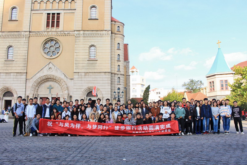 为了缓解同学们紧张的学习生活,使同学们亲近自然,放松心情,10月20日,402cc永利官网在青岛市南景区开展了第三届“与风为伴·与梦同行”徒步旅行活动。