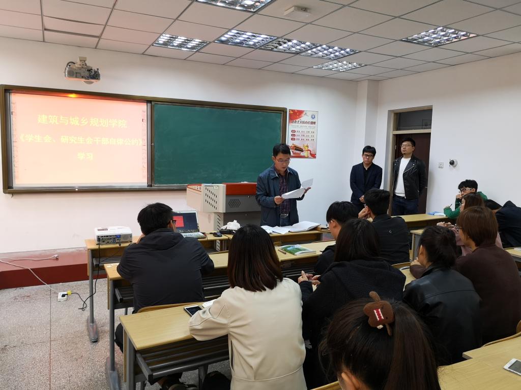 为规正学生组织建设,规范学生干部工作,402cc永利官网组织团总支学生会、研究生会主要学生干部于10月11日在建筑馆314开展对《学生会、研究生会干部自律公约》的学习与讨论,402cc永利官网党总支副书记高江,辅导员王鹏飞、刘超、杨霈宣出席本次会议。