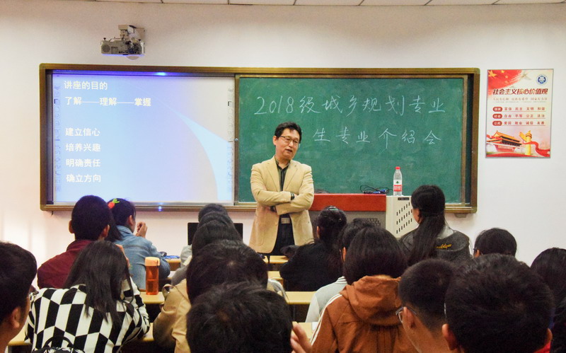 刘一光首先向2018级新生介绍了城乡规划专业的内涵,从城乡规划学科概念、专业毕业生要求以及培养计划中的业务培养要求三个方面进行了介绍,他指出,城乡规划学科概念分别由“学科层面”即城乡、城市、城市化和“法定层面”即总体规划组成;在谈到城乡规划与职业发展前景与展望时,刘一光主要介绍了城乡规划专业毕业生从事的工作种类,从社会发展角度、城乡发展角度、学科发展角度、职业发展角度逐次讲解了城乡规划学科的发展变化。最后,刘一光提及了城乡规划专业发展中的机遇与挑战,让同学们明确目标,把握方向,将自己的职业与爱好结合起来。