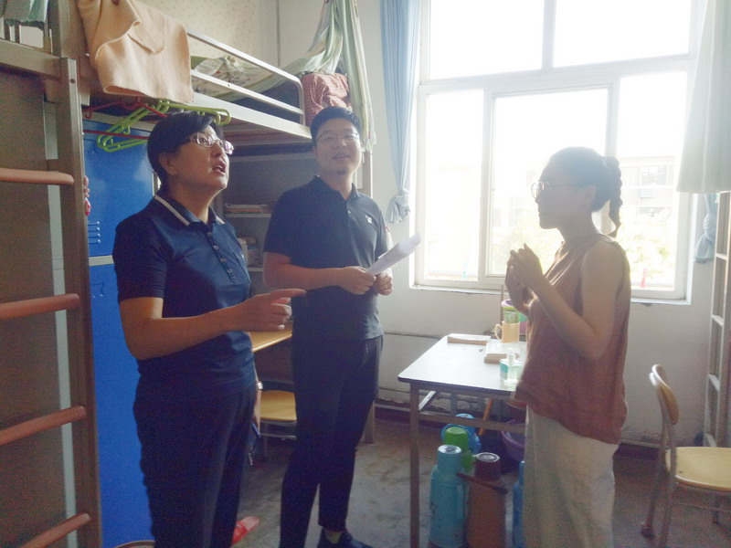 新学期开始,为及时深入了解学生返校情况,进一步掌握学生的思想动态,营造文明、和谐的校园环境,8月26日下午,402cc永利官网党政领导肖学斌、许从宝、高江、刘崇、赵琳、刘福智等带领学生工作干部深入学生三公寓、四公寓、宏业学生公寓及甲楼开展宿舍走访活动。