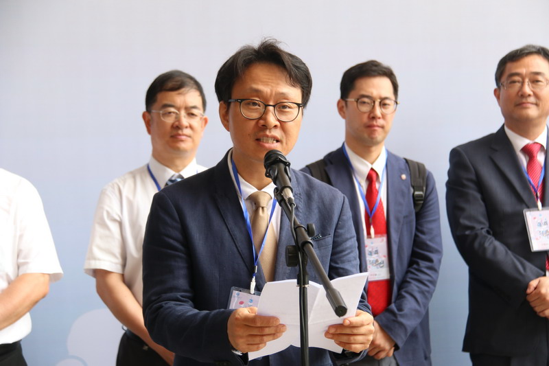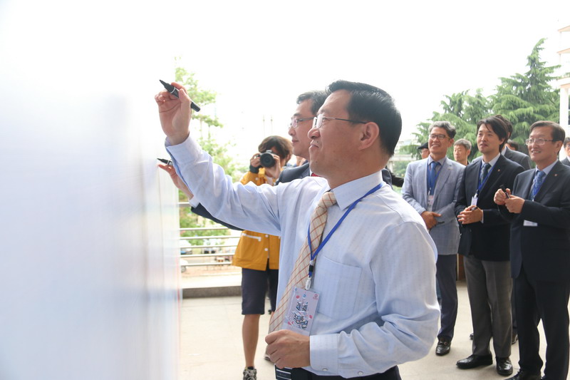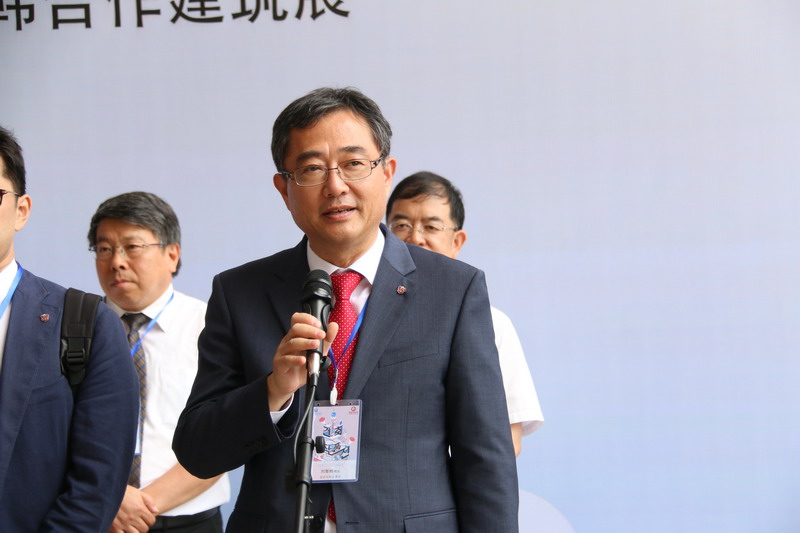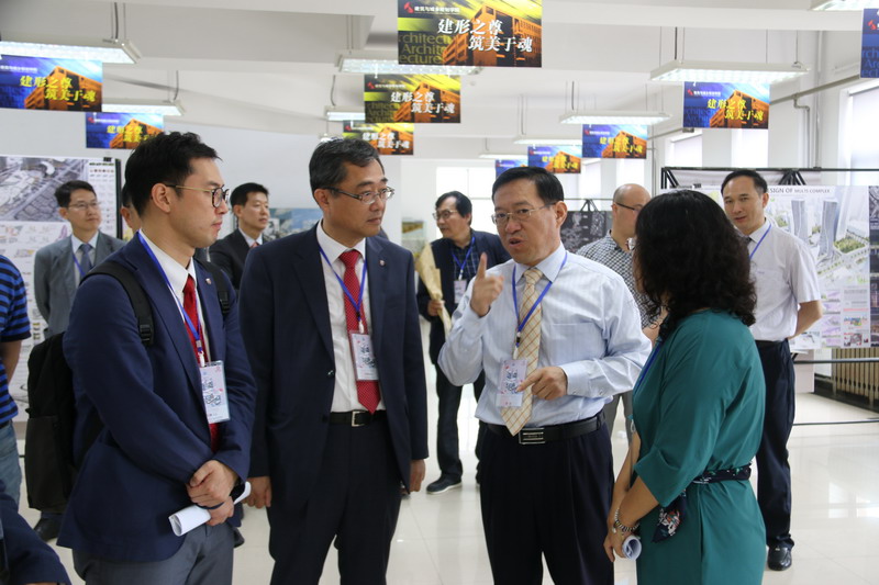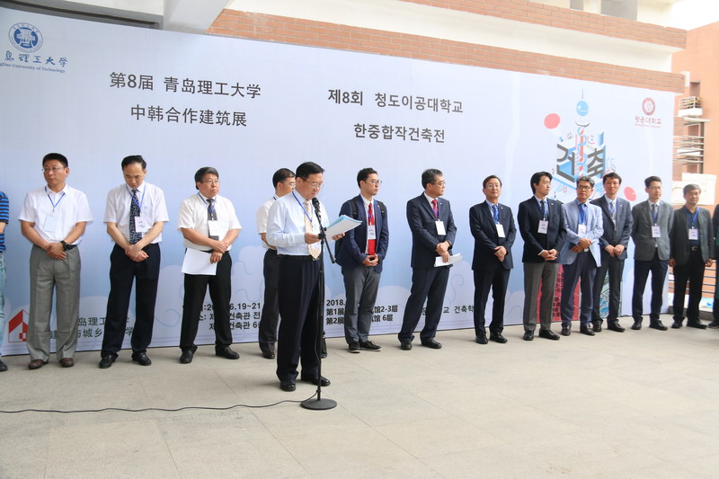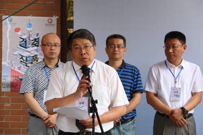 6月19日上午11:00,第八届中韩合作建筑展暨中韩合作建筑学专业毕业设计展开幕式在建筑馆二楼平台举行。韩国光云大学校长刘智相、研究生院院长崔英根、产学协力团团长郑永旭一行,我们校长谭秀森、副校长张伟星、校长办公室(合作发展处)、国际交流处(国际教育学院)、教务处、402cc永利官网负责人以及在我们任教的韩国光云大学派遣教授、中韩合作建筑学专业学生参加了开幕式,开幕式由副校长张伟星主持。