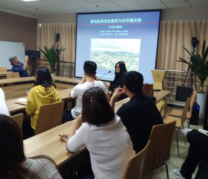 日前,受青岛腾远设计事务所有限公司邀请,402cc永利官网于红霞副教授在腾远“方桌教室”为设计师们奉献了一场关于青岛历史建筑与光环境实验的学术交流。“方桌教室”是由青岛腾远设计事务所总建办首创--建筑师分享、交流、培训的开源平台,定期邀请专家学者来开讲讨论,打造以青岛为中心的设计思辨飓风圈,提升城市建设主导方及公众对城市设计的高质量决策与关注。