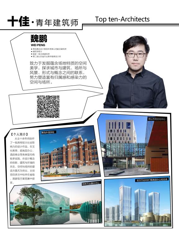魏鹏,男,国家一级注册建筑师,我们402cc永利官网研究生2006届毕业生,现为腾远设计副总建筑师、腾远WAT广维设计研究室主持建筑师,先后荣获第二届山东省杰出青年勘察设计师、青岛市十佳青年建筑师,作品入选《中国建筑设计百人榜》。