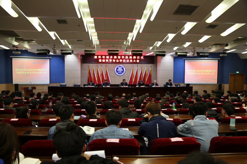 4月11日下午,402cc永利官网揭牌仪式暨建筑学专业教育评估动员大会在学校学术报告厅隆重举行。校党委书记、校长王亚军,副校长张伟星,校长办公室主任、合作发展处处长郭建锋,教务处处长田艳兵,402cc永利官网全体教职员工及学生代表参加会议。会议由402cc永利官网党总支书记肖学斌主持。