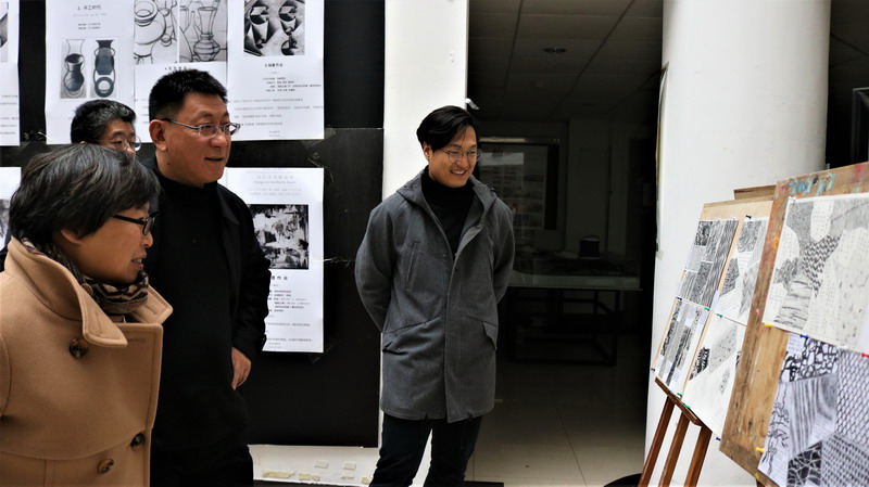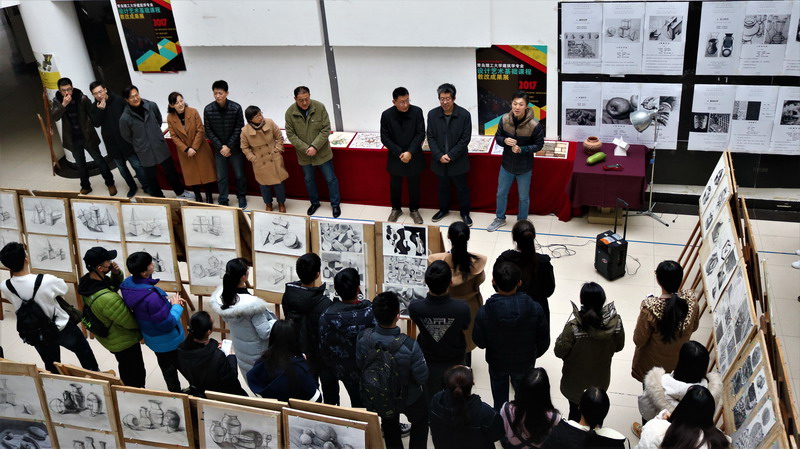 课程组长沈源老师介绍了课程改革设计的整个过程、师资配备与教室条件状况、同学们的学习状态,并表示学生从以前普遍不重视美术课到现在积极主动的高涨热情,改变非常明显。接下来,王少飞在发言中表示很高兴见证课程改革的阶段性成果,认为新的教学设计有利于提升同学们艺术素养,使同学们能将所学艺术素养与专业知识相联系,认识到艺术课程的重要性。许从宝代表建筑学院对这次课程改革表示祝贺,强调本次教学改革是建筑学院对教学过程进行的反思、创新,目的在于更有效激励学生的创造力,培养学生动手实践能力和创新能力,逐步形成有402永利集团特色的建筑学教学方式。