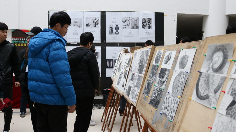据介绍,本次课程改革着眼于对所描绘物体的理解和再创作。在本次教改成果展上展出的作品也风格各异,既有传统的静物素描,也有基于静物的空间组合创作;既有对不同纹理的描摹,更有不同尺度的放大写生。一幅幅对果蔬和不同材质物品的显微素描、几何静物写生与抽象画,以及不同材质、不同缩放比例的纹理拼贴画,无不展示出学生无穷的想象空间和巨大的艺术潜能。本次展览还吸引了其他年级学生的广泛关注。