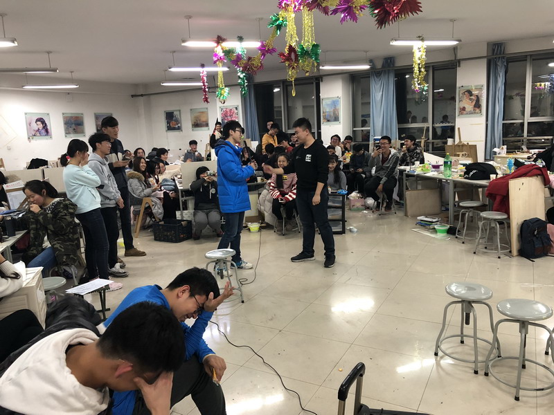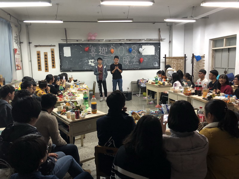 晚上,同学们在各自专业教室举行了迎新年茶话会活动,每个班级都准备了精彩的节目和游戏。张建新、侯方高、杨霈宣等老师到各个班级进行了巡访慰问,专业教室里的同学们围坐在一起欢歌笑语,共度元旦佳节。
