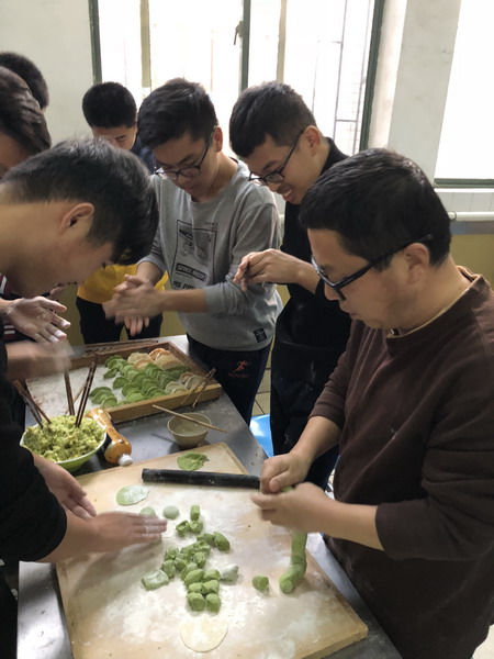 北院食堂洋溢着浓浓的节日氛围,大家围在长桌两侧迫不及待的挽起袖子,擀皮儿,包馅儿,紧张的忙碌起来。大家一边包饺子,一边话新年,餐厅里不时回荡着欢声笑语,气氛愉快而活跃,同学们感受到家一般的亲切和温暖。