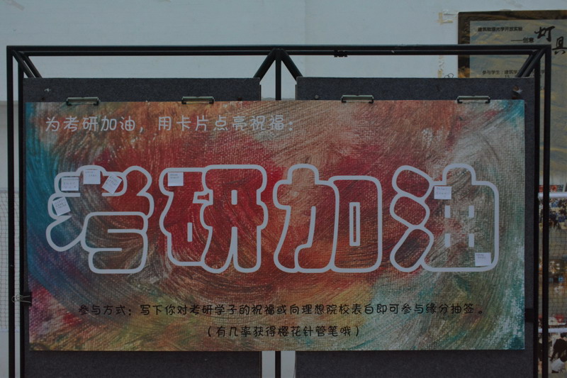 活动持续到下午四点,收集了一百余份同学们的祝福和心愿。本次活动不仅为面临着巨大挑战的考研学生送去温暖的祝愿和振奋人心的鼓励,以帮助他们取得更好的成绩,而且让低年级同学们感受考研时期紧张忙碌的氛围。同时此次活动展现了建筑学院对学生的关怀,展现了建筑学院学子们善良而团结的优良品质。