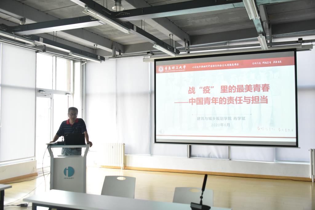 为庆祝中国共产党成立99周年,充分展现新时代青年学生的政治本色和精神风貌,引导青年学生不忘初心、牢记使命,6月28日下午,402cc永利官网开展“庆祝建党99周年”专题思政课:战“疫”里的最美青春—中国青年的责任与担当。本次思政课在滨海人居环境学术创新中心7楼进行,学院党总支书记肖学斌主讲,学院学工办主任、分团委书记王鹏飞,辅导员杨霈宣、王明慧、郭轶群,全体在校学生党员、入党积极分子代表、团学骨干代表到场参加。