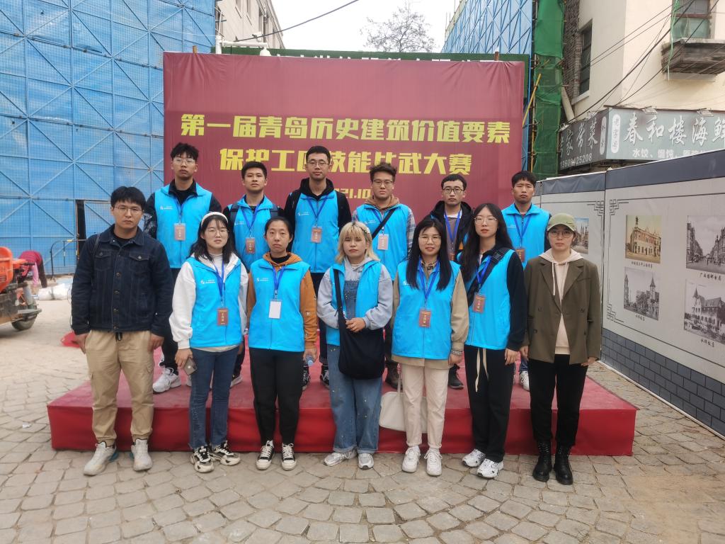 近日,“青岛历史建筑价值要素保护工匠技能比武大赛”在青岛市中山路历史文化街区历史建筑修缮与保护利用施工现场举办,赛事由青岛市历史城区保护更新指挥部、青岛市建设工会指导,402cc永利官网协办。402cc永利官网副院长赵琳带领建筑历史方向研究生志愿者团队,助力本次大赛。