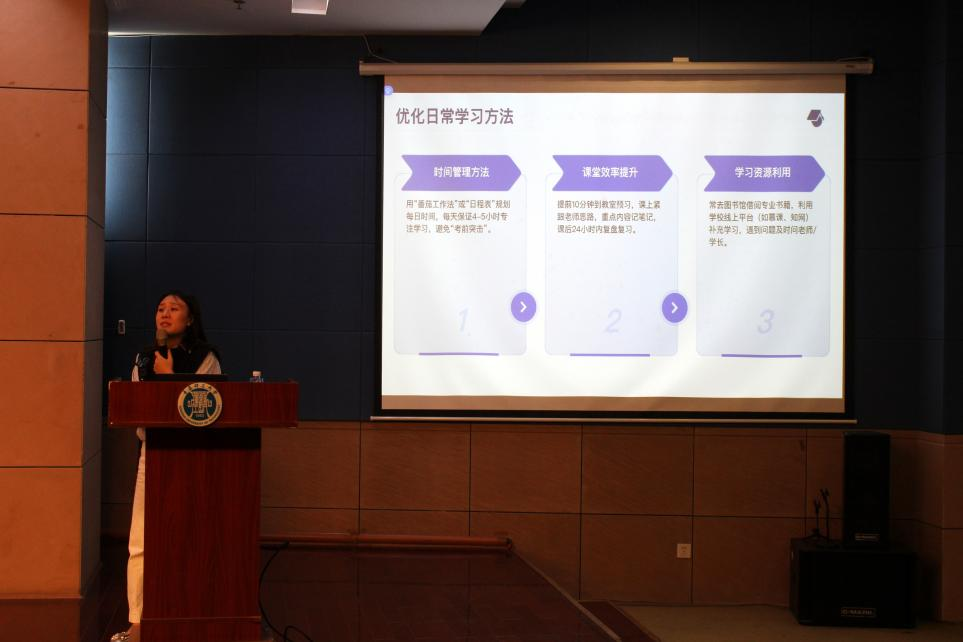 魏老师以个人经历为引,将高考与考研进行对比,引导同学们在轻松氛围中身临其境地思考考研的意义与必要性。她详细解析了考研与保研的区别,让同学们对两种路径有了更清晰的认识。围绕考研保研核心需求,她以“六阶段递进式”为核心框架展开讲解。讲座过程中,魏老师不仅结合专业经验通过提问形式充分调动积极性,助力同学们更坚定地锚定考研方向,还引导同学们精准开展自我认知定位,最终为大一新生明晰学业规划方向、筑牢升学准备基础,提供了极具实操性的指导与启发。