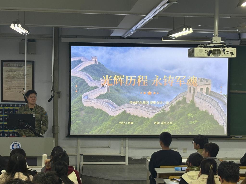 建学241班杨冰心细致讲述初入军营的点滴,从大漠的干燥孤寂、驻地保密的煎熬到逐步适应的坚韧转变,班长无微不至的关怀与战友间的相互鼓励帮扶,让她在思乡与挑战中倍感温暖。她着重描绘话务岗位的自豪感,在一次次保障任务圆满完成中收获成长,真切体悟到平凡岗位对国家重器、国防事业的非凡意义,更加坚定了信仰与追求。她特别提到,战友是永远可以信赖的坚强后盾,共同经历考验、克服困难,让她真正理解了“把后背交给对方”的深厚情谊与战友情怀。她还结合自身经历,为同学们详细介绍了入伍的多种途径及军营发展路径,鼓励大家勇敢追梦,积极投身国防事业,在奉献中实现人生价值。