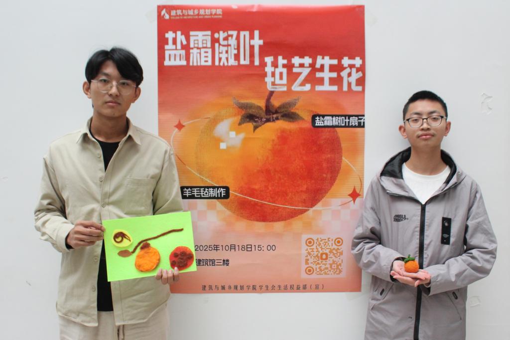 此次“盐霜凝叶·毡艺生花”霜降主题活动,以传统节气为纽带,实现传统民俗文化与手工艺术的深度融合,不仅让学生亲手制作了专属霜降纪念作品,更助力学生在实践过程中深化对传统节气文化的理解与认同。下一步,学院将持续以二十四节气为核心主题,开展更多贴近学生生活、兼具文化温度的校园活动,推动传统节气文化在新时代校园焕发新活力。(撰稿:张晗、朱华建;审核:王中帅)